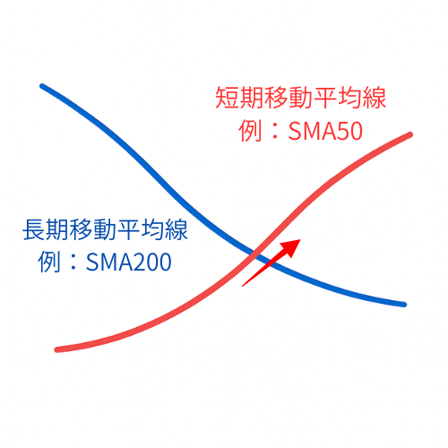 短期線が長期線を上抜けたら「ゴールデンクロス」=上昇のサイン。