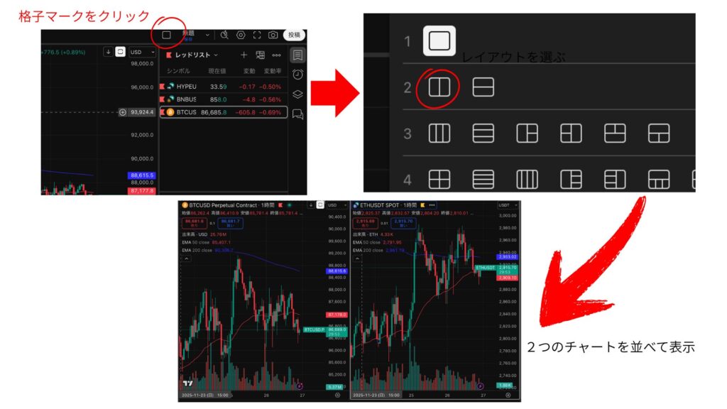 複数銘柄を比較してみよう(BTCとETHを同時に表示)