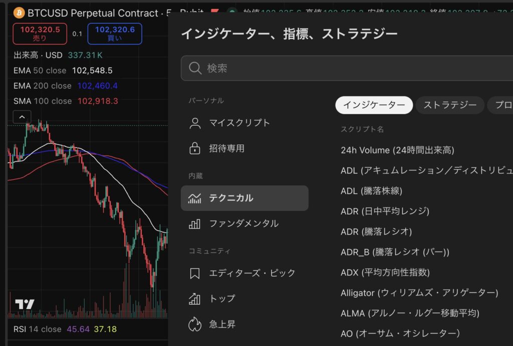 | BTCUSD.P (または BTCUSDT.P) | パーペチュアル(無期限先物) | トレード分析やトレンド把握をしたい人向け |