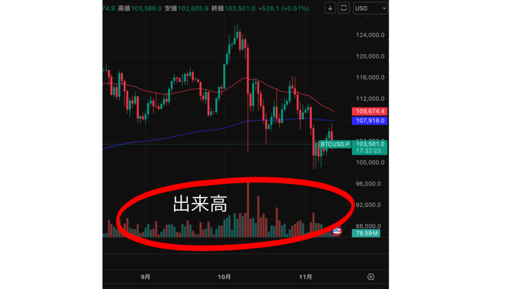 | 出来高(Volume) | どれだけ取引が行われたか(市場の勢い)を示す | 出来高が増える=注目度や資金が集まっているサイン |